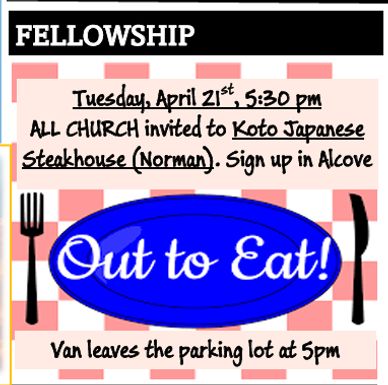 Everyone is invited to this month's Out To Eat, so make plans to attend.