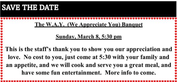 Cost tentatively will be $60 per person if we can get our "Early Bird" registration in by Jan 31st. Please sign up in the Alcove as soon as possible so we can get the savings.